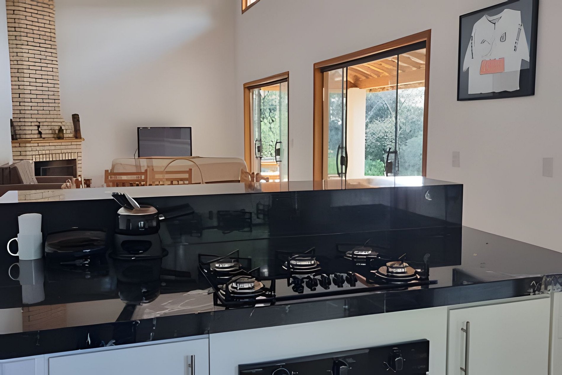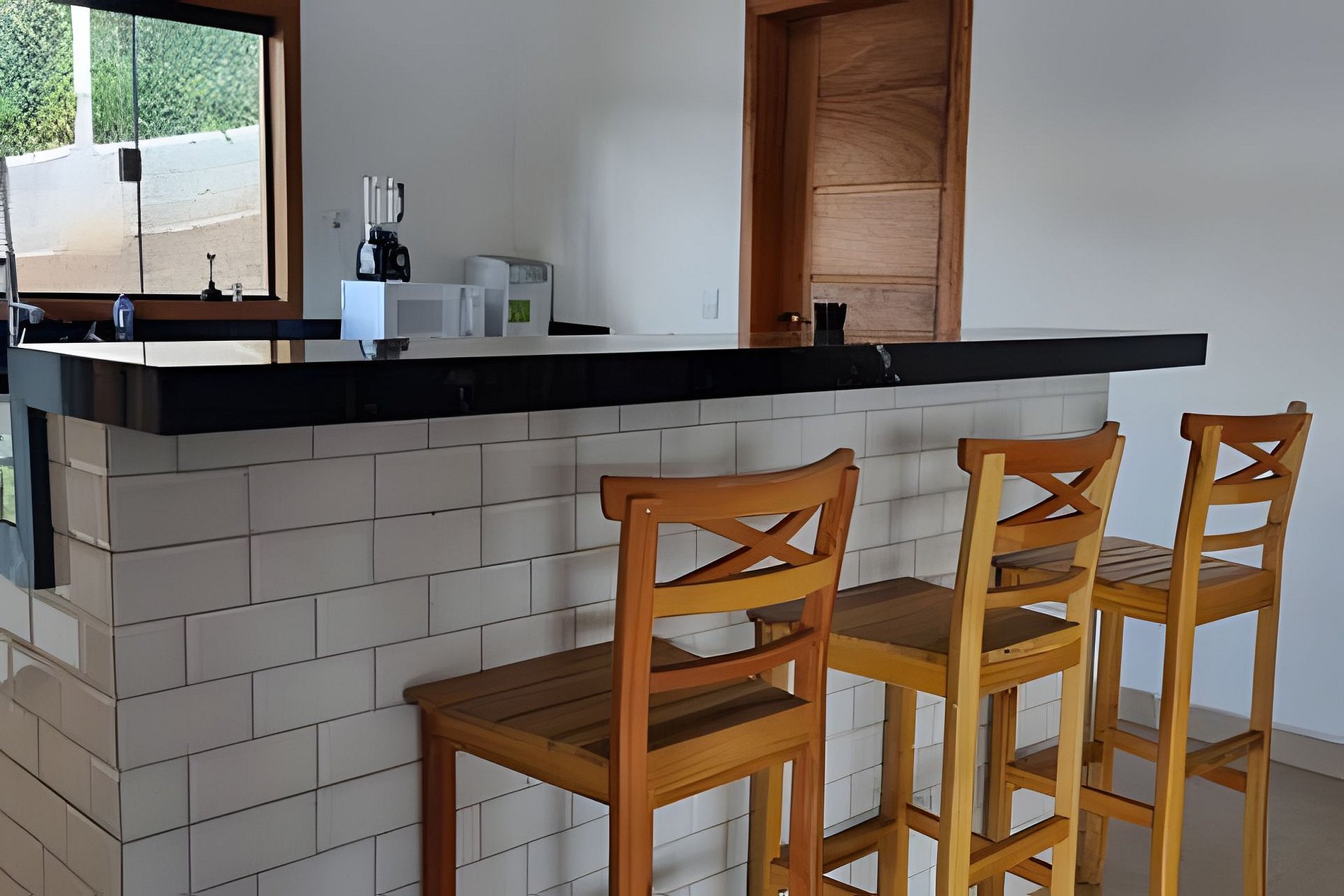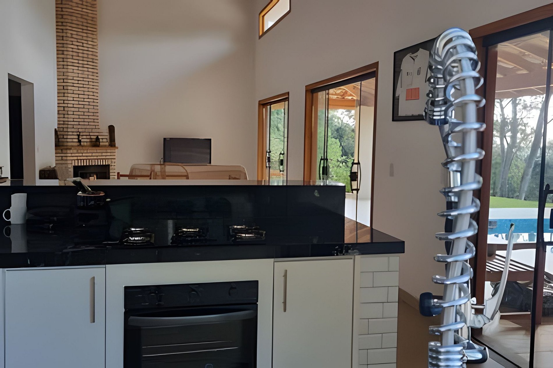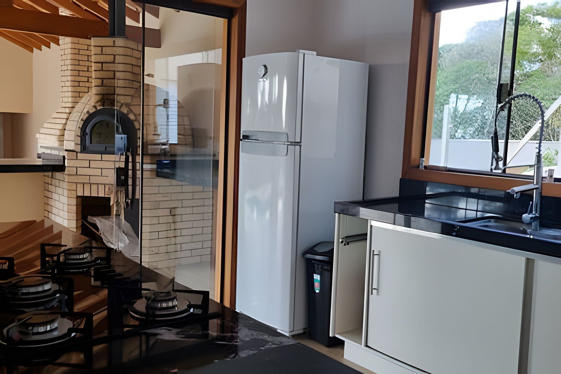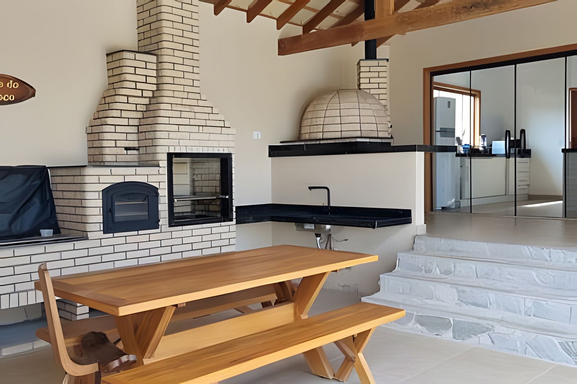 Equipada com Churrasqueira, forno de pizza, e fogão a lenha. com todos os utensílios necessários para colocar em pratica suas melhores receitas.