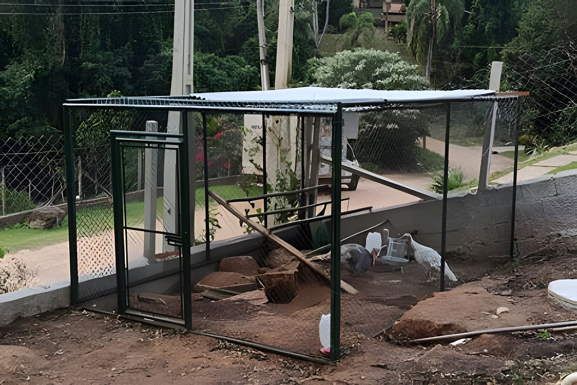 Um jardim muito bem cuidado, grama aparada e um viveiro com Peru e Pavão complementam o lazer desta chácara.
