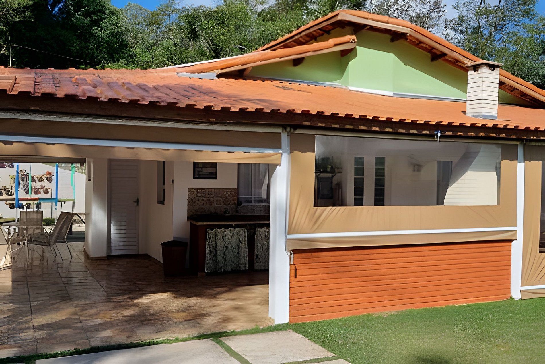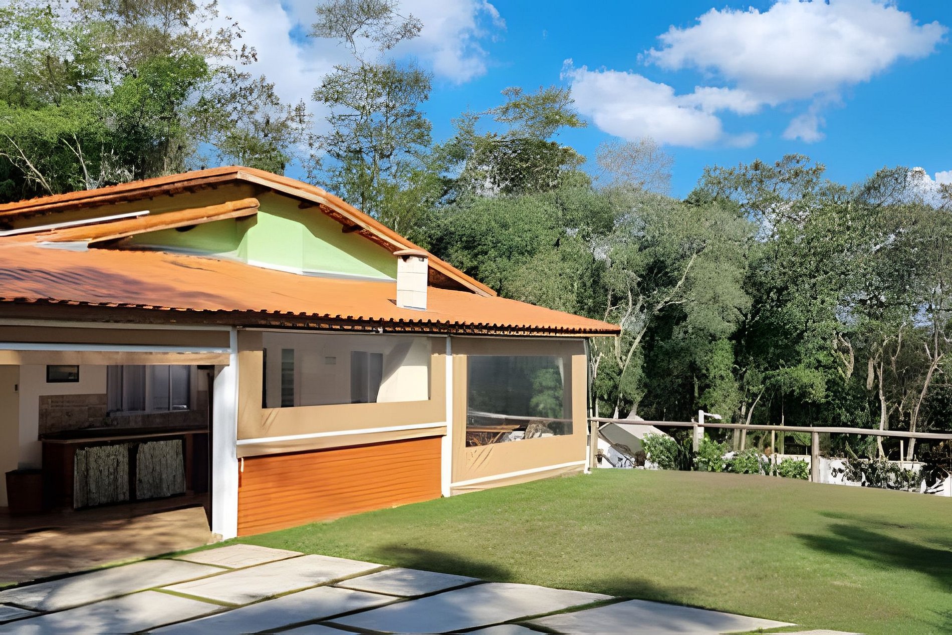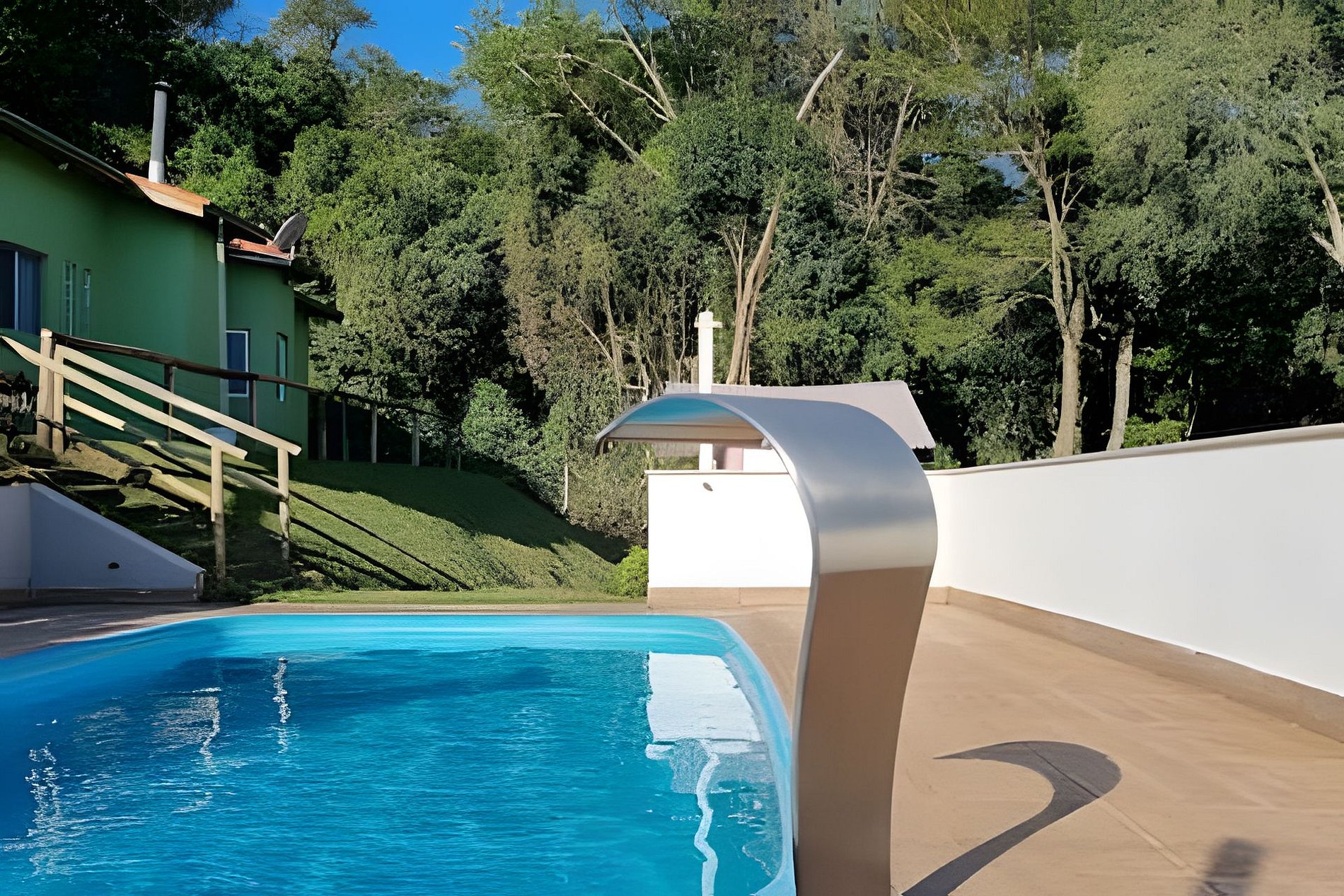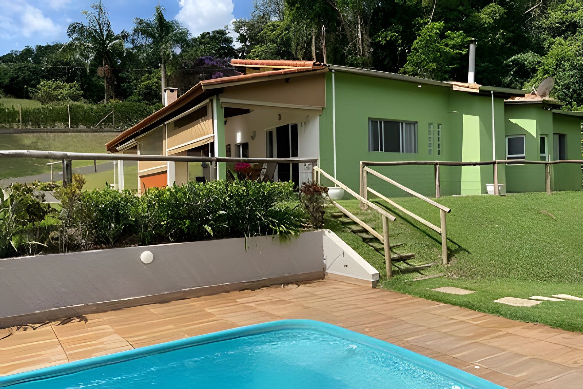 Todas as fotos são dentro da propriedade. O hospede tem acesso exclusivo ao jardim, piscina e fogo de chão