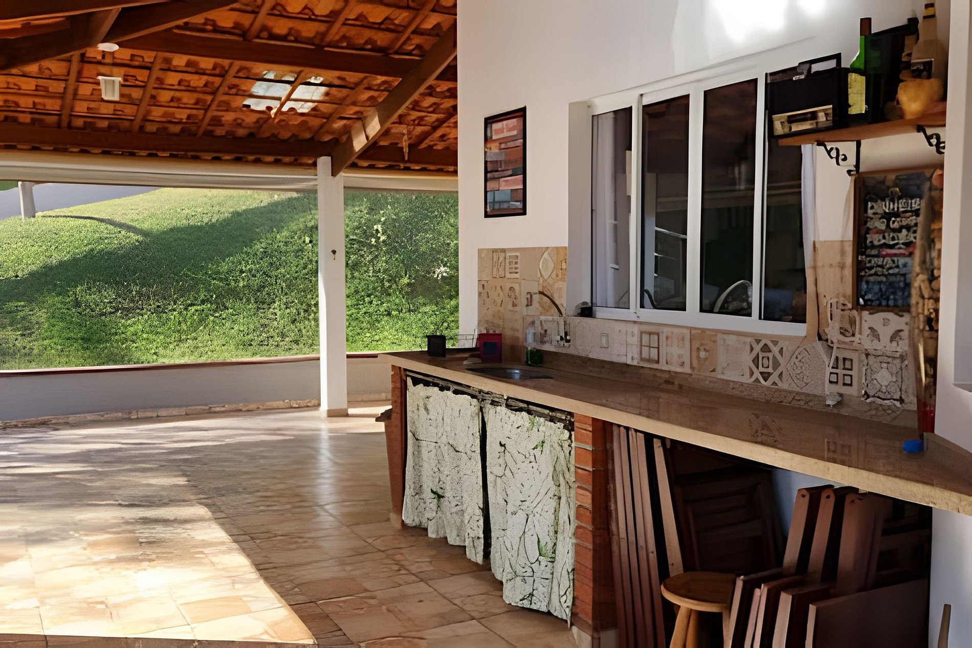 AREA GOUMET Equipada com Churrasqueira e fogão a lenha