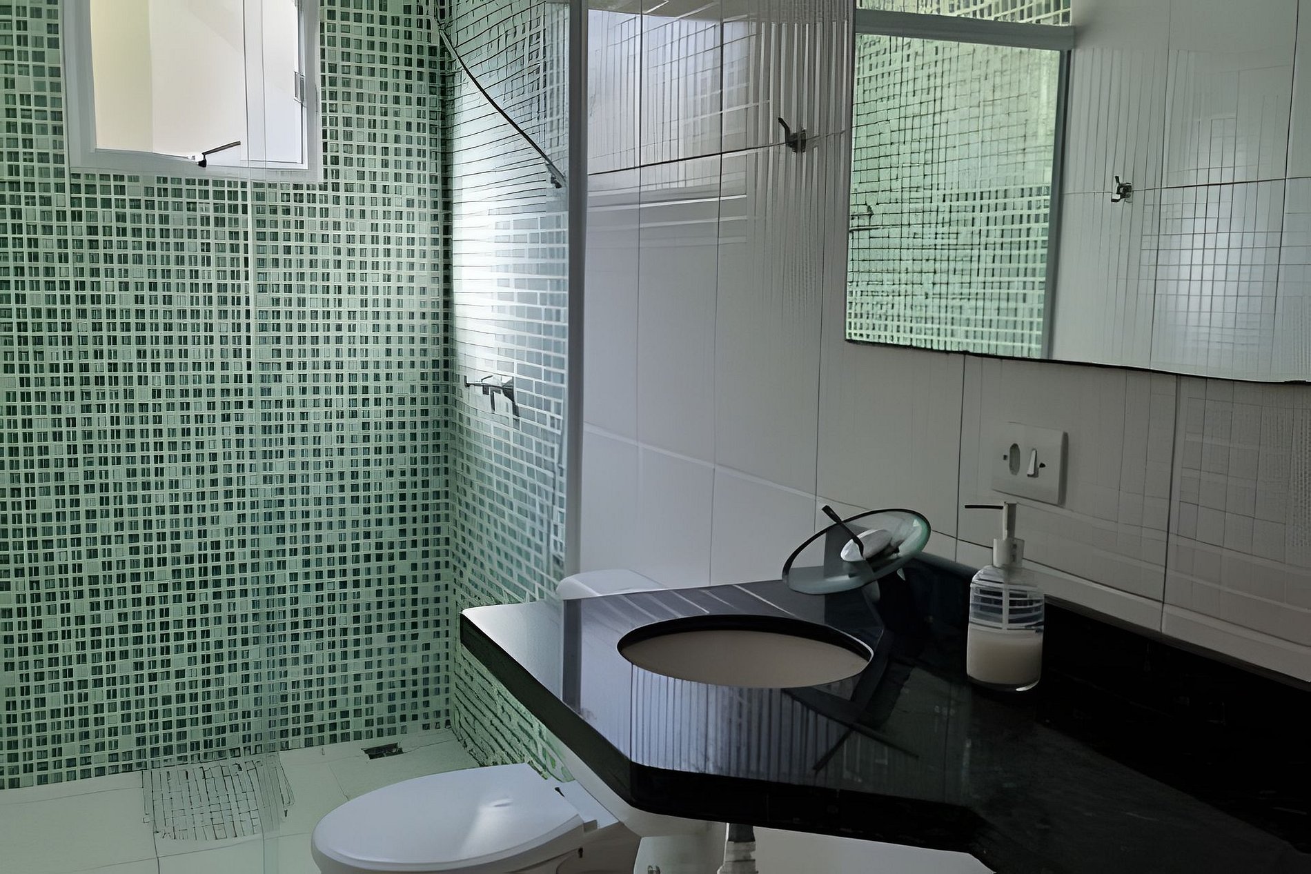 Os banheiros estão abastecidos com sabonete e papel higiênico.