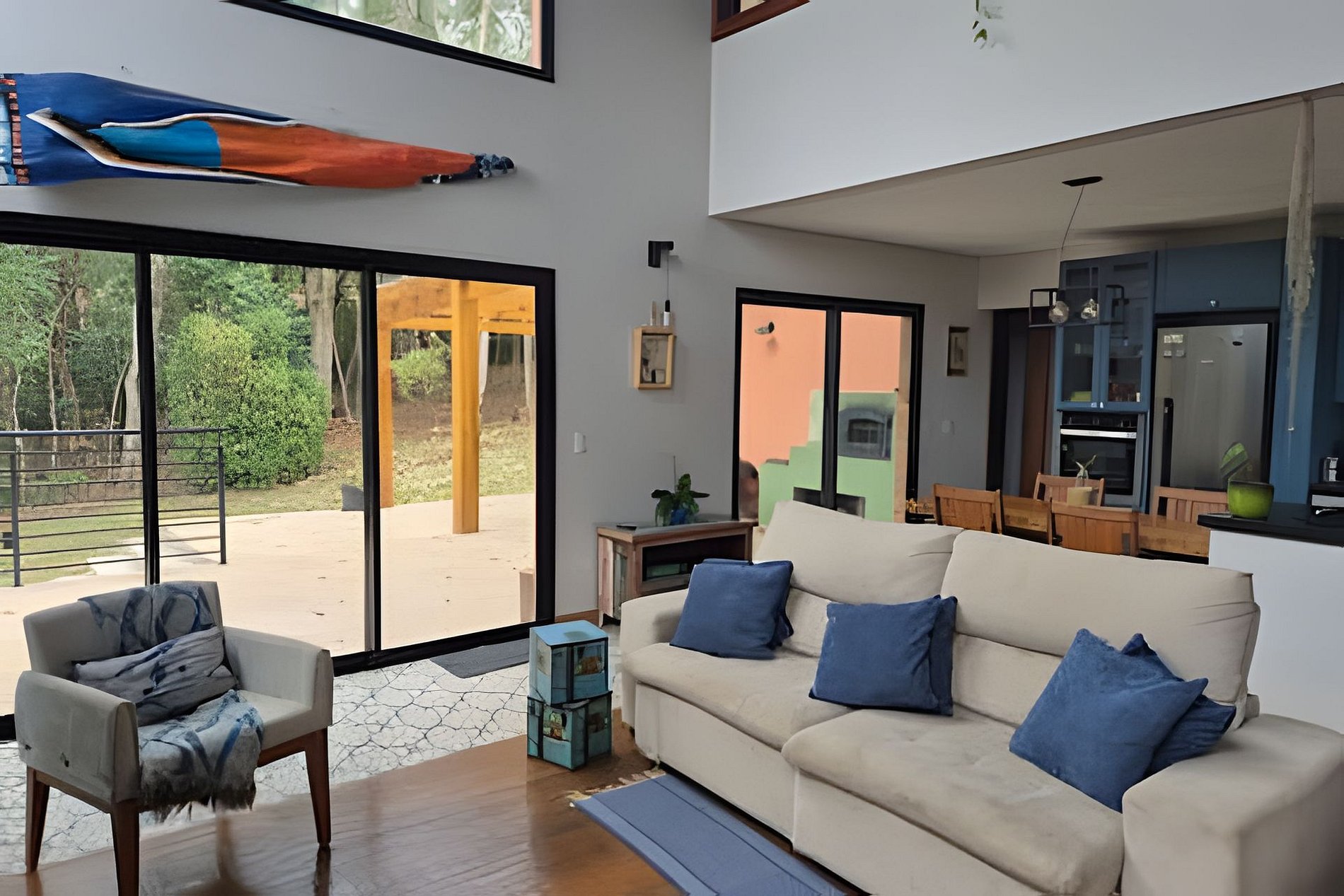 Cozinha integrada e totalmente equipa. Geladeira, forno, cooktop, maquina de lavar louças, máquina de lavar e secar e todos os utensílios necessários para seu final de semana.