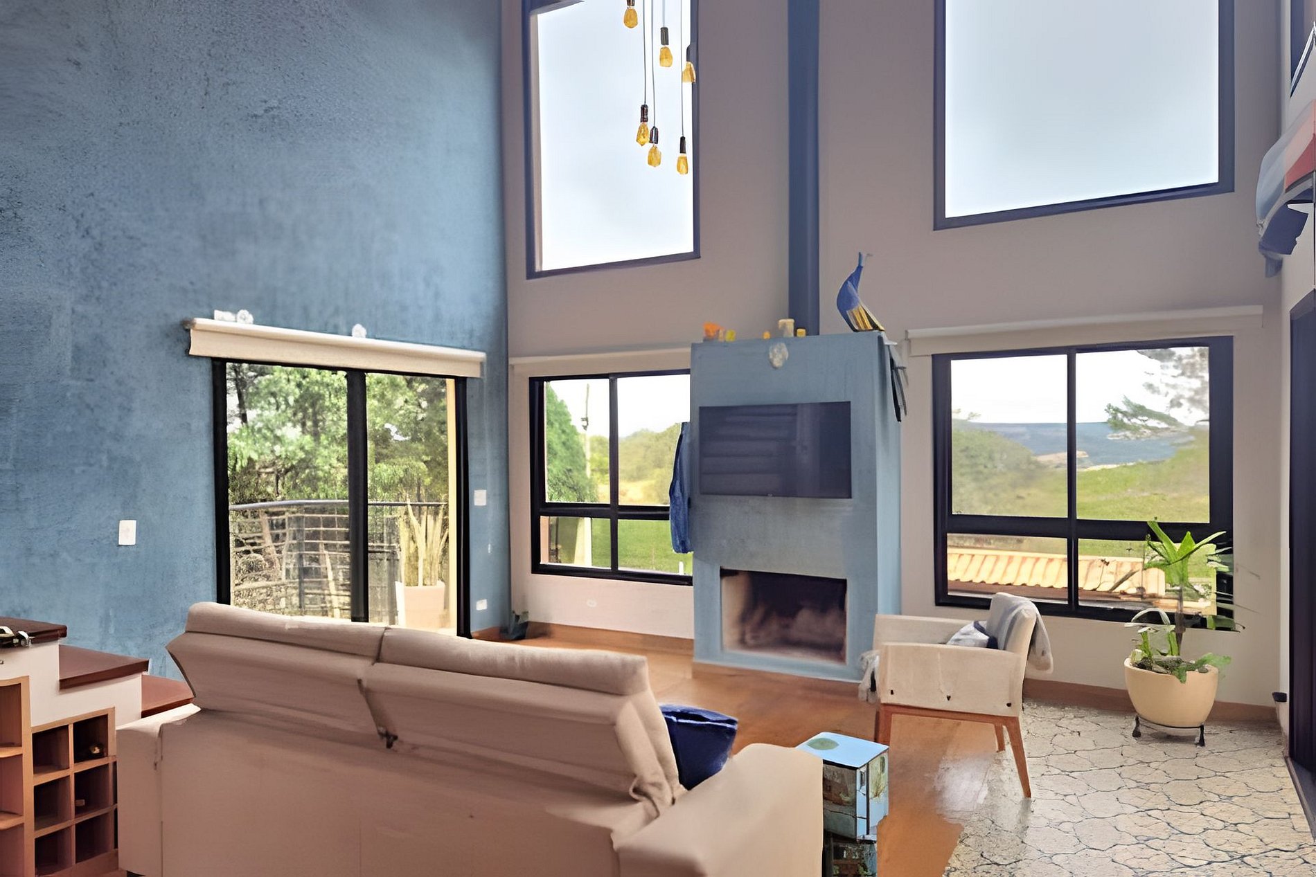 Sala com TV e varanda