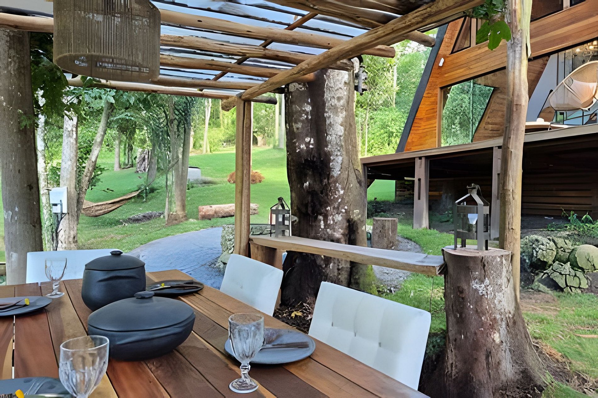 BOSQUE: um pequeno bosque complementa a área verde deste chalé