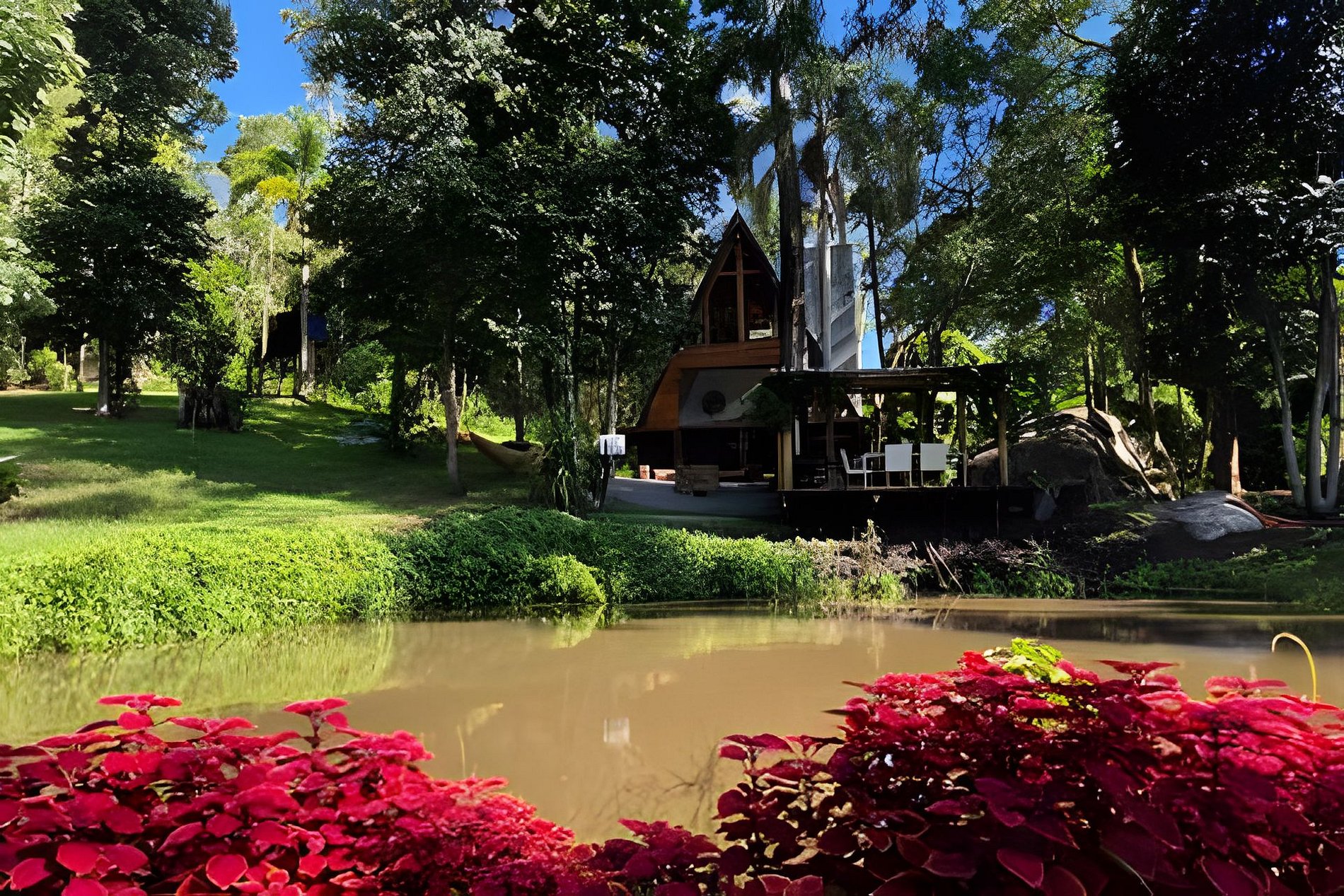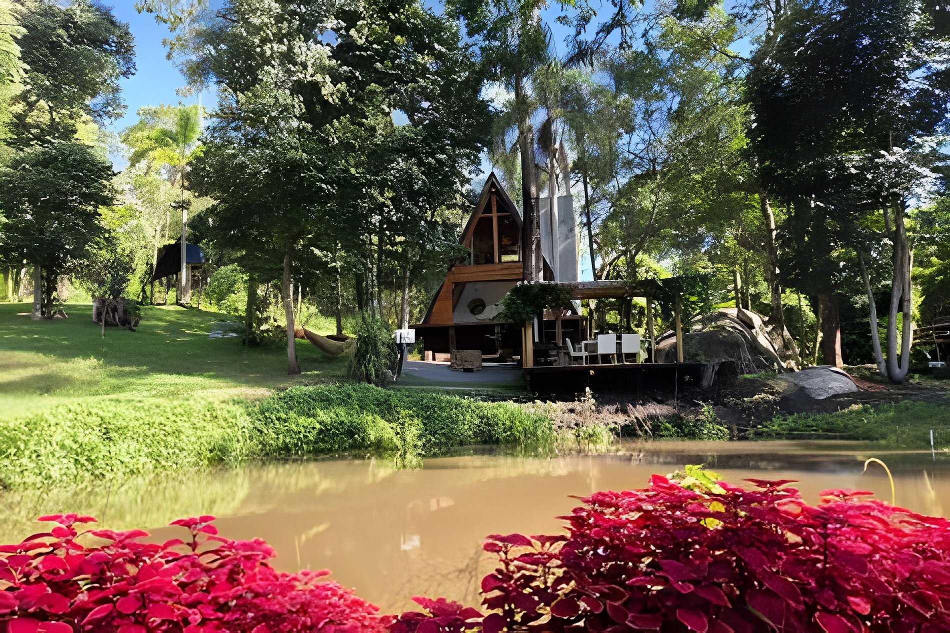 O terreno oferece um lindo bosque, jardim e um pequeno lago, compondo o cenário ideal para momentos inesquecíveis. Localizado a apenas 12 km do centro de Ibiúna, 20 km da famosa Estrada do Vinho e 70 km da cidade de São Paulo, é uma combinação perfeita de isolamento e sofisticação.