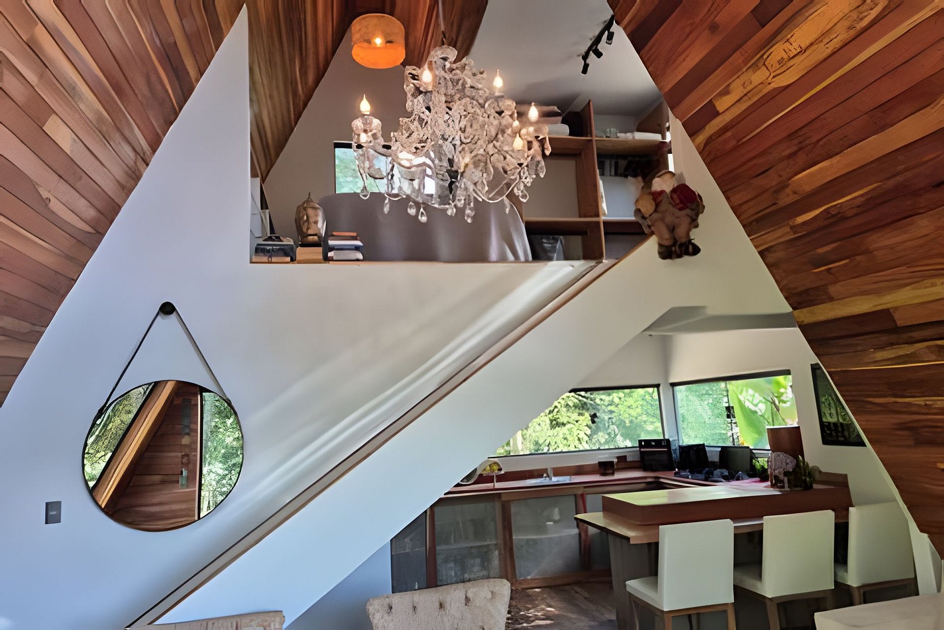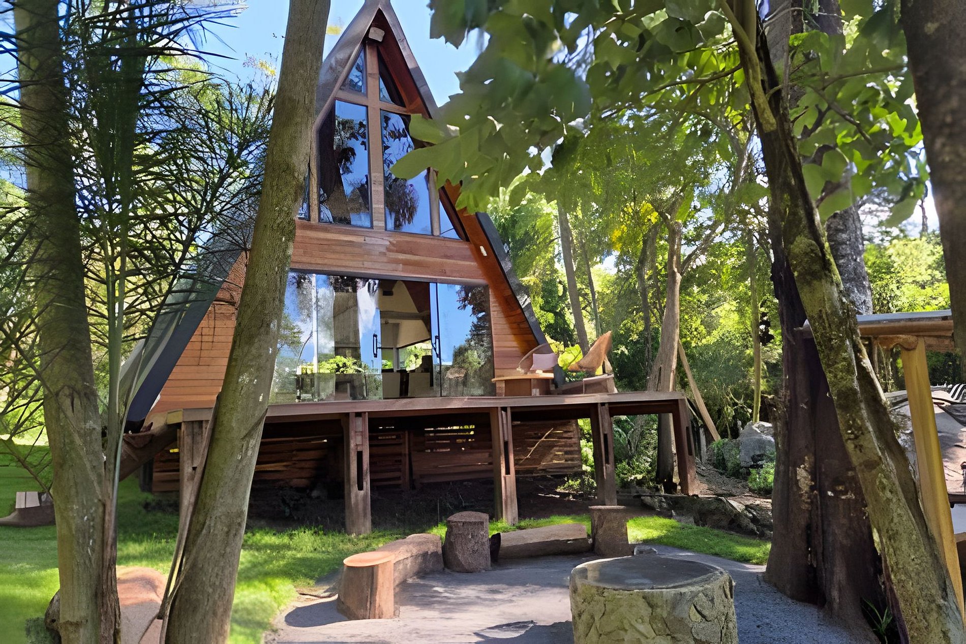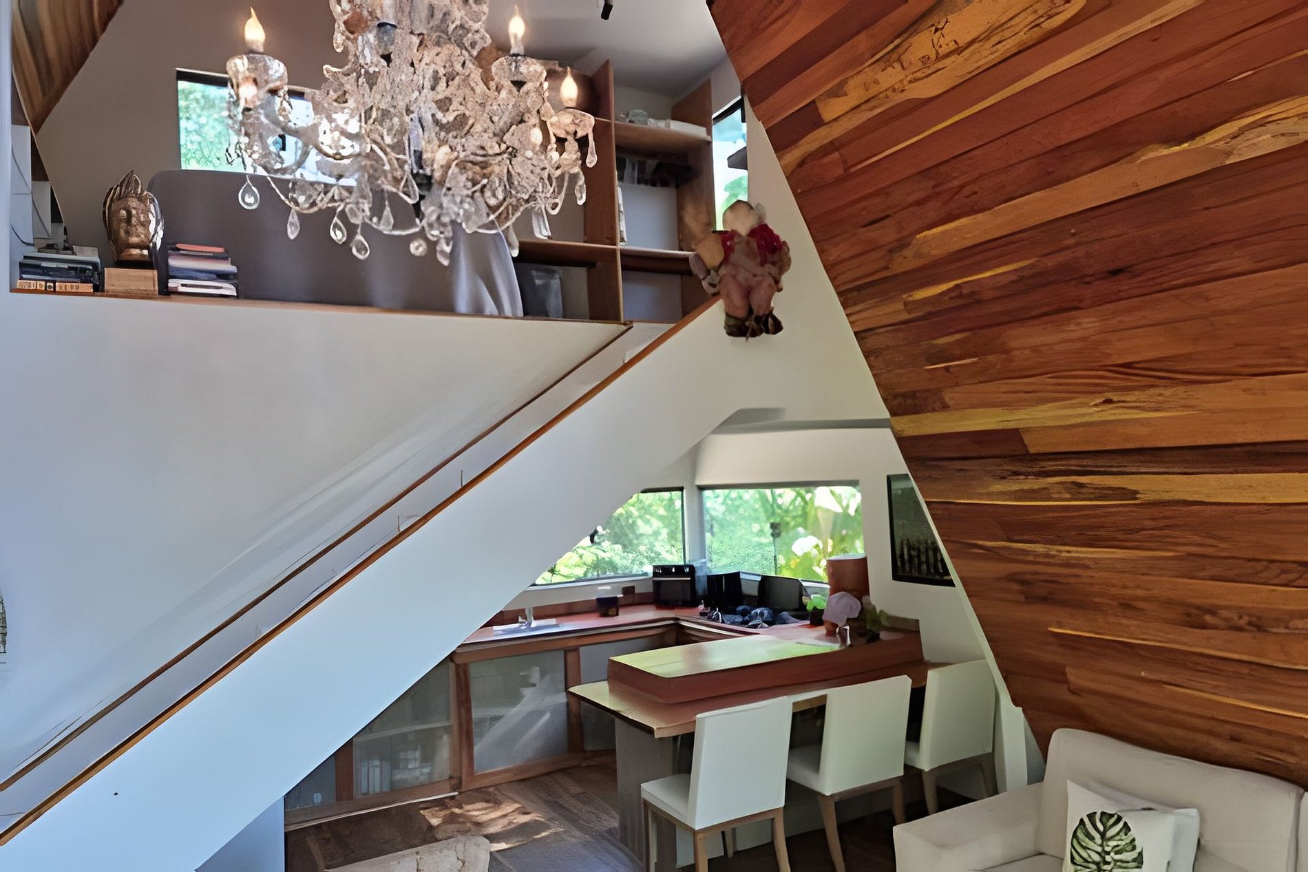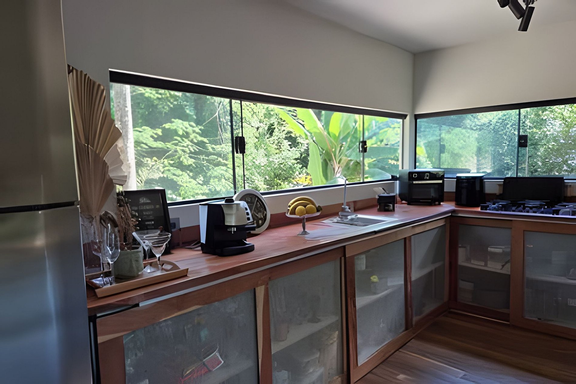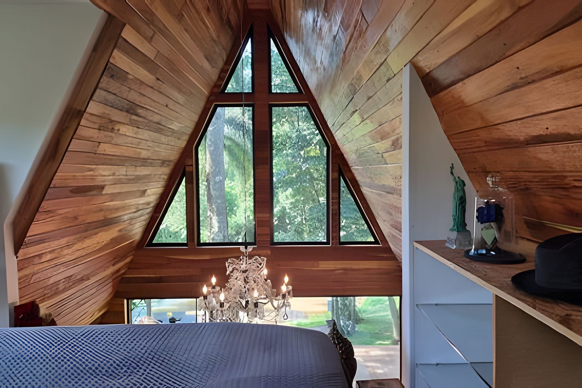 O chalé é elegante, acolhedor e funcional, contando com deck, sala integrada à cozinha, banheiro completo e um mezanino com uma confortável cama queen.