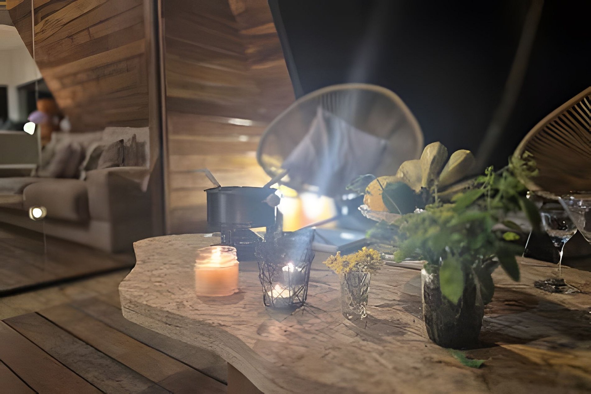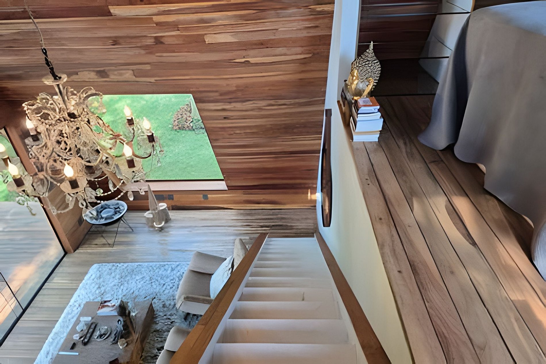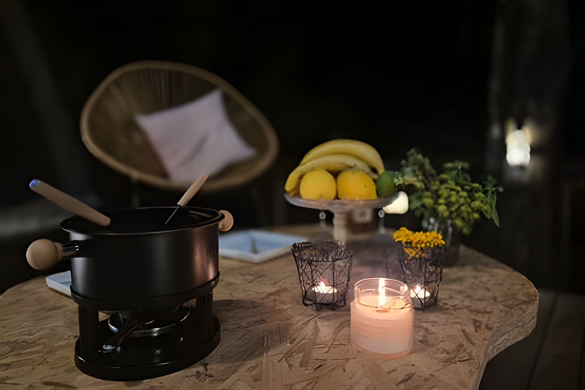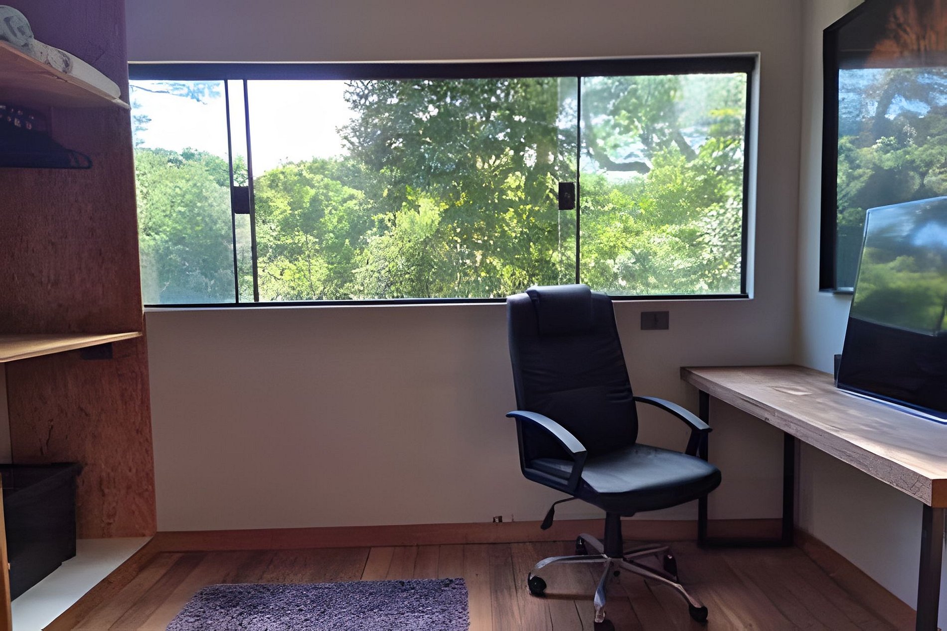 O chalé é elegante, acolhedor e funcional, contando com deck, sala integrada à cozinha, banheiro completo e um mezanino com uma confortável cama queen.