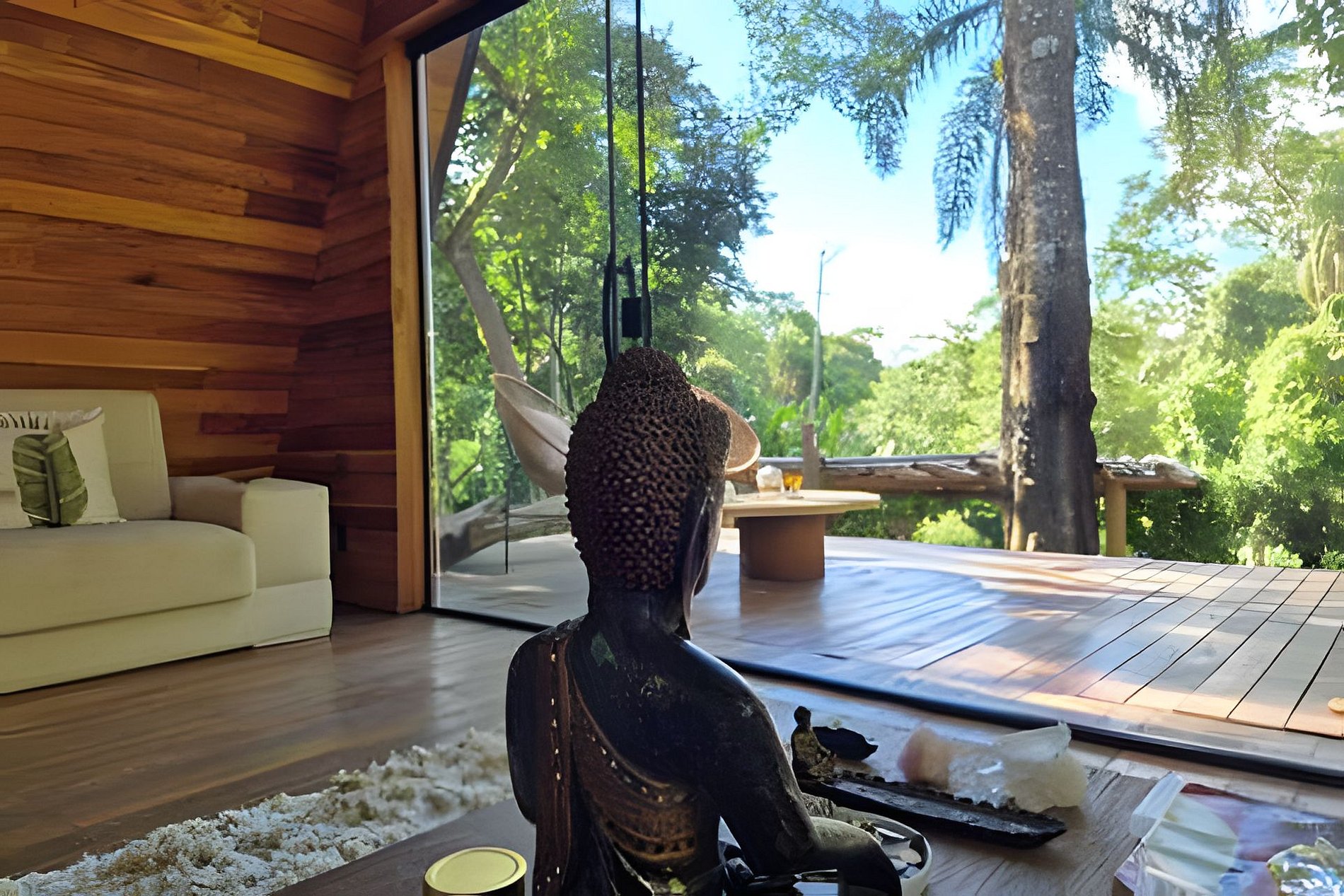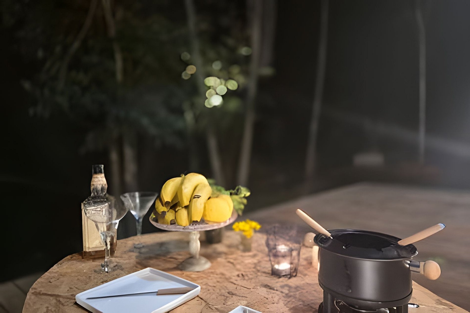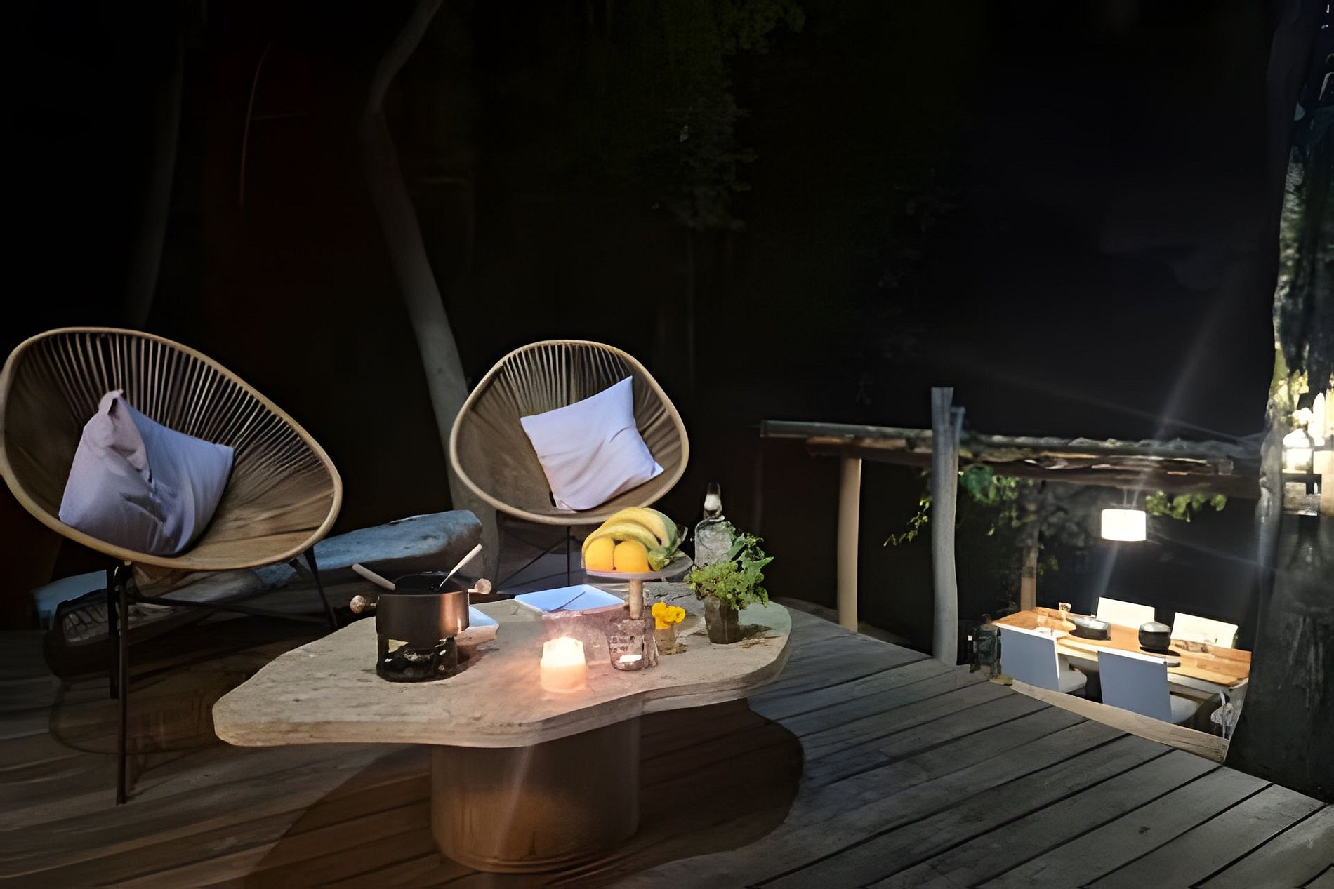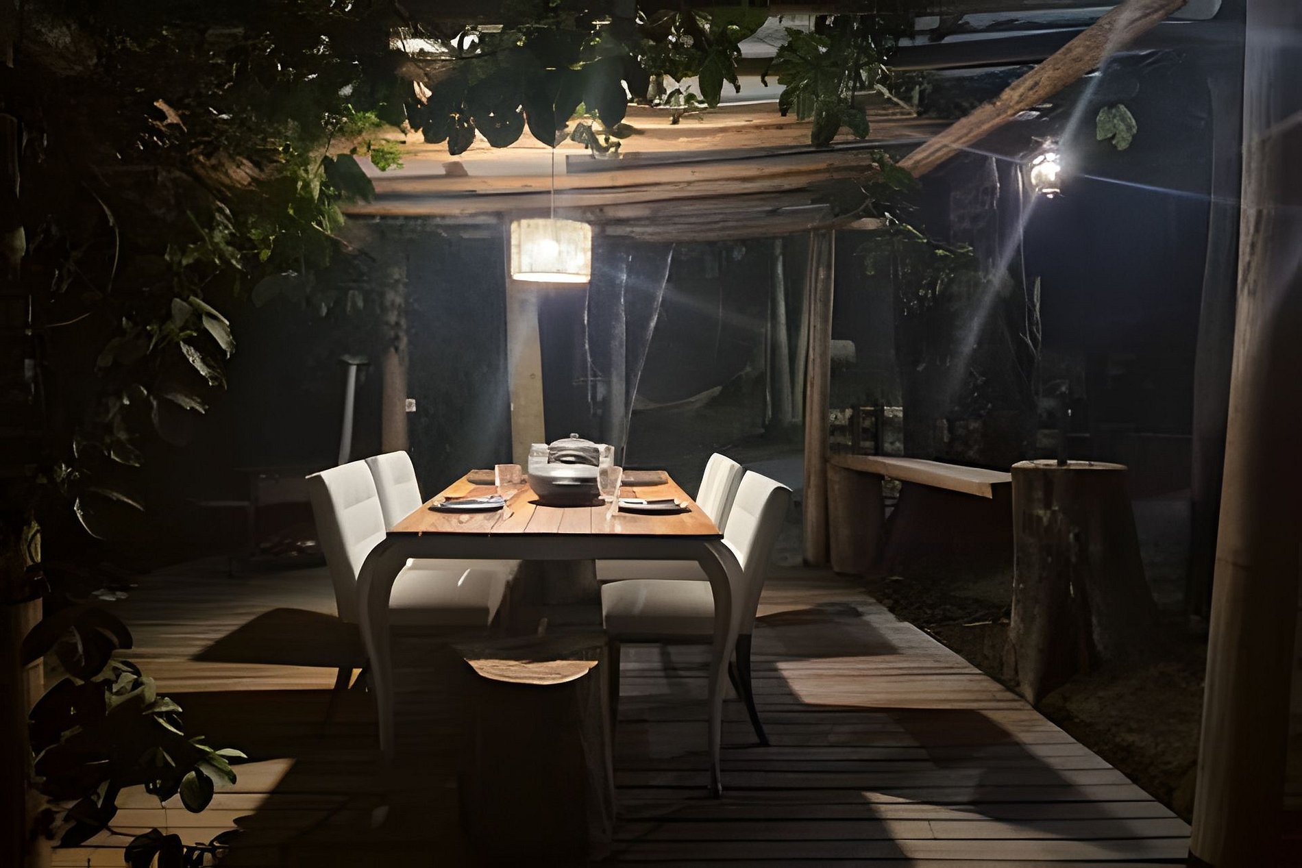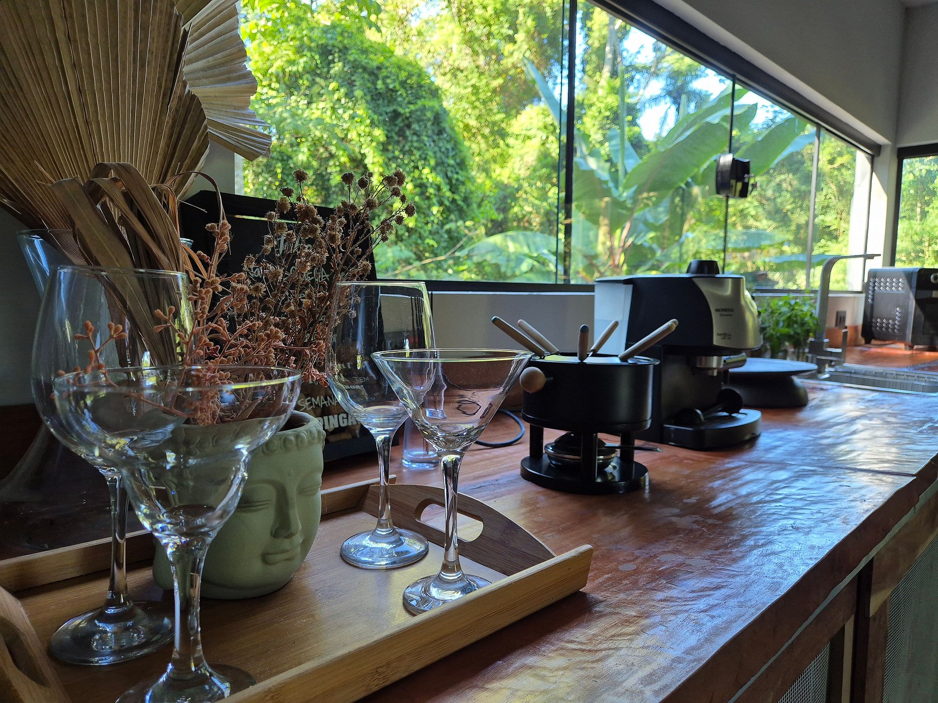 O chalé é elegante, acolhedor e funcional, contando com deck, sala integrada à cozinha, banheiro completo e um mezanino com uma confortável cama queen.