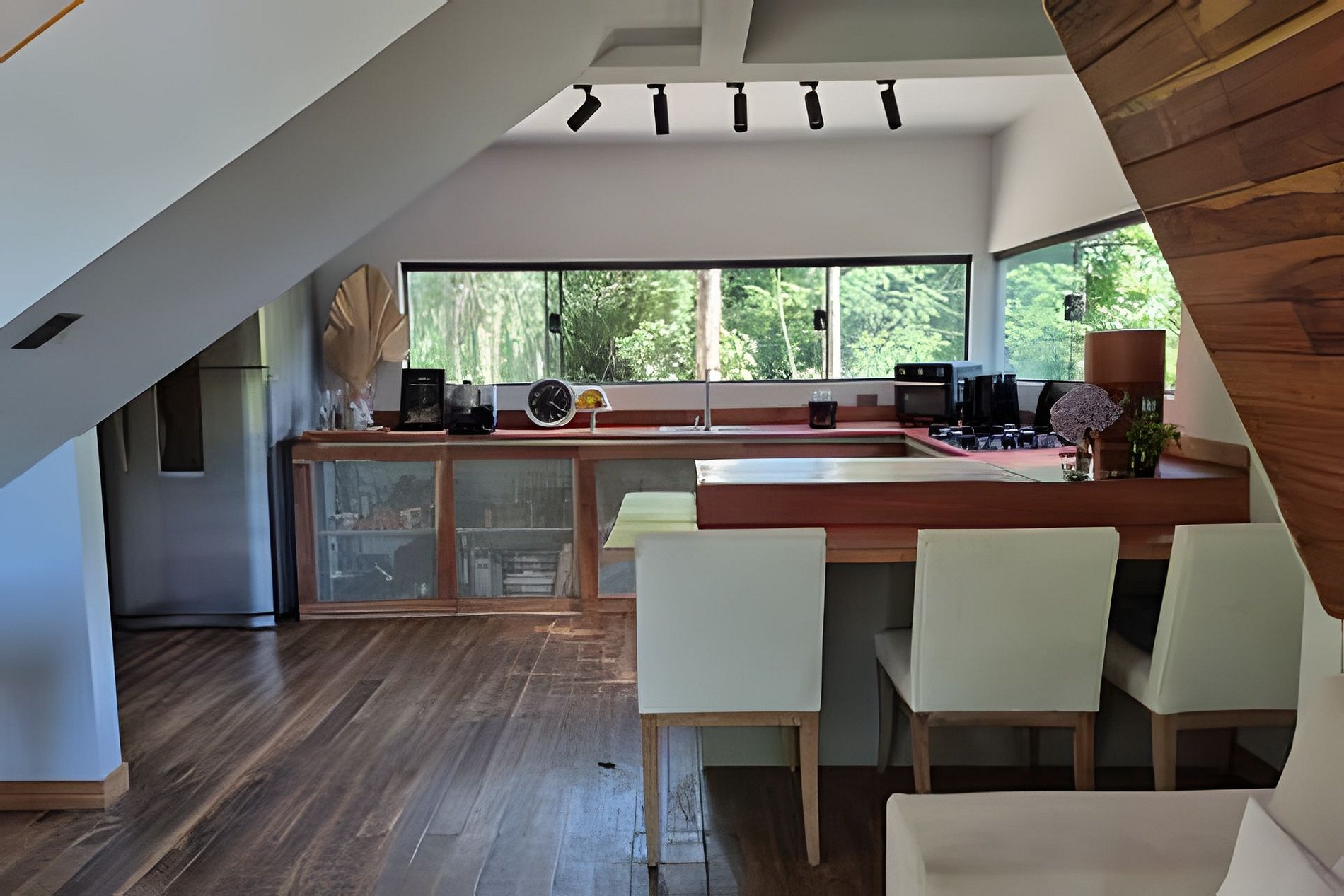 Relaxe em um refúgio cercado pela natureza em Ibiúna, localizado em um condomínio fechado com total segurança. Com mais de 4.000m² de área este espaço é perfeito para quem busca tranquilidade e contato com o verde. O chalé é elegante, acolhedor e funcional, contando com deck, sala integrada à cozinha, banheiro completo e um mezanino com uma confortável cama queen. Do lado de fora, uma área gourmet equipada com churrasqueira, balcão, fogo de chão e espaço para rede convida ao lazer e ao descanso.