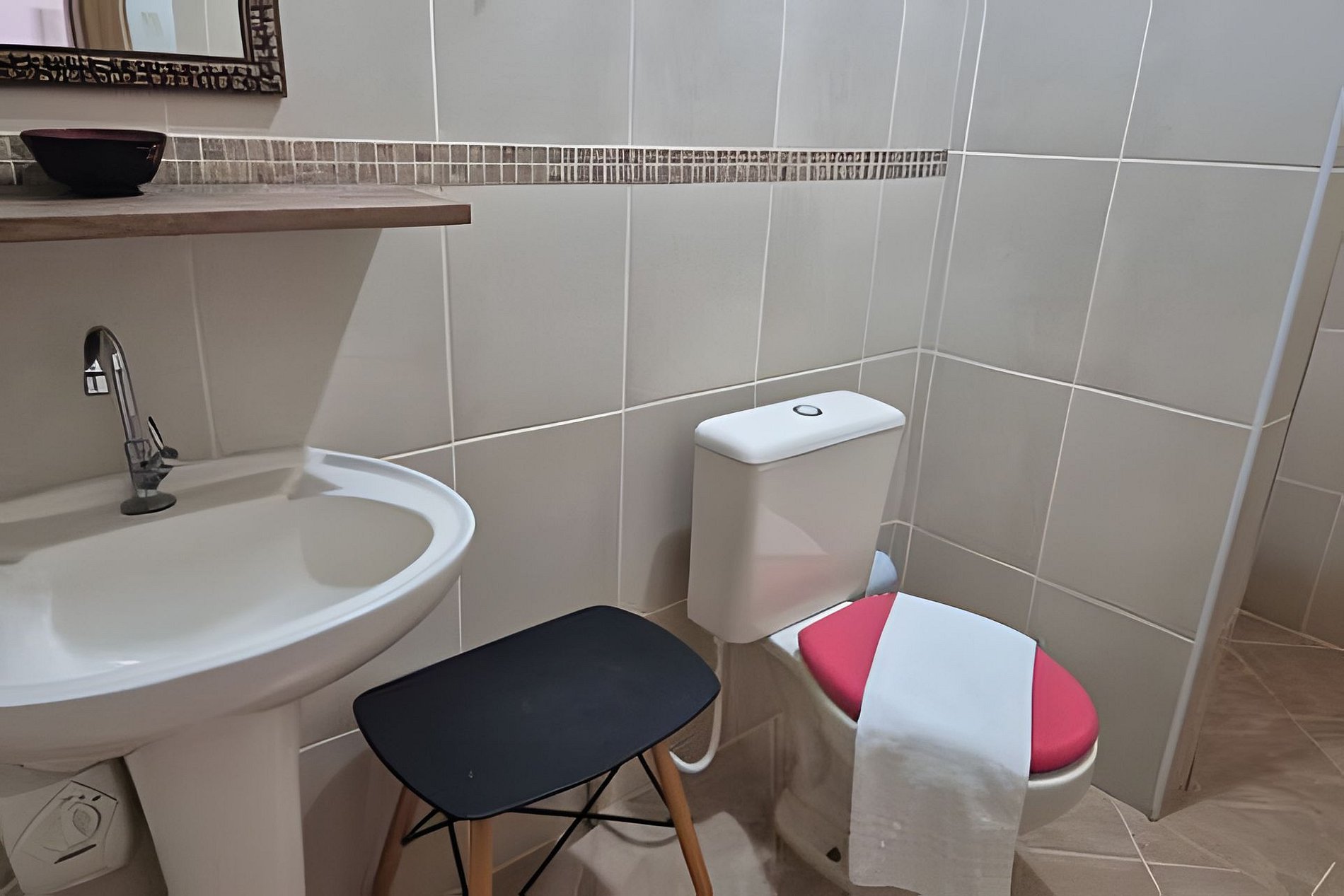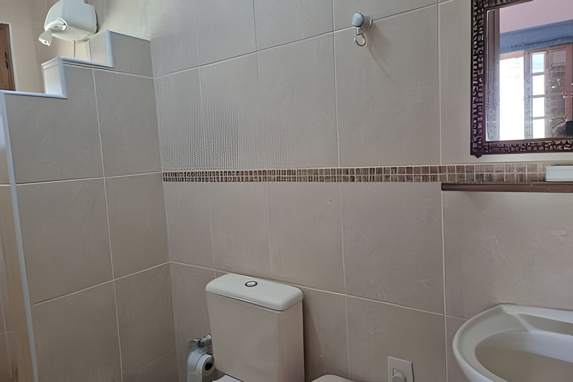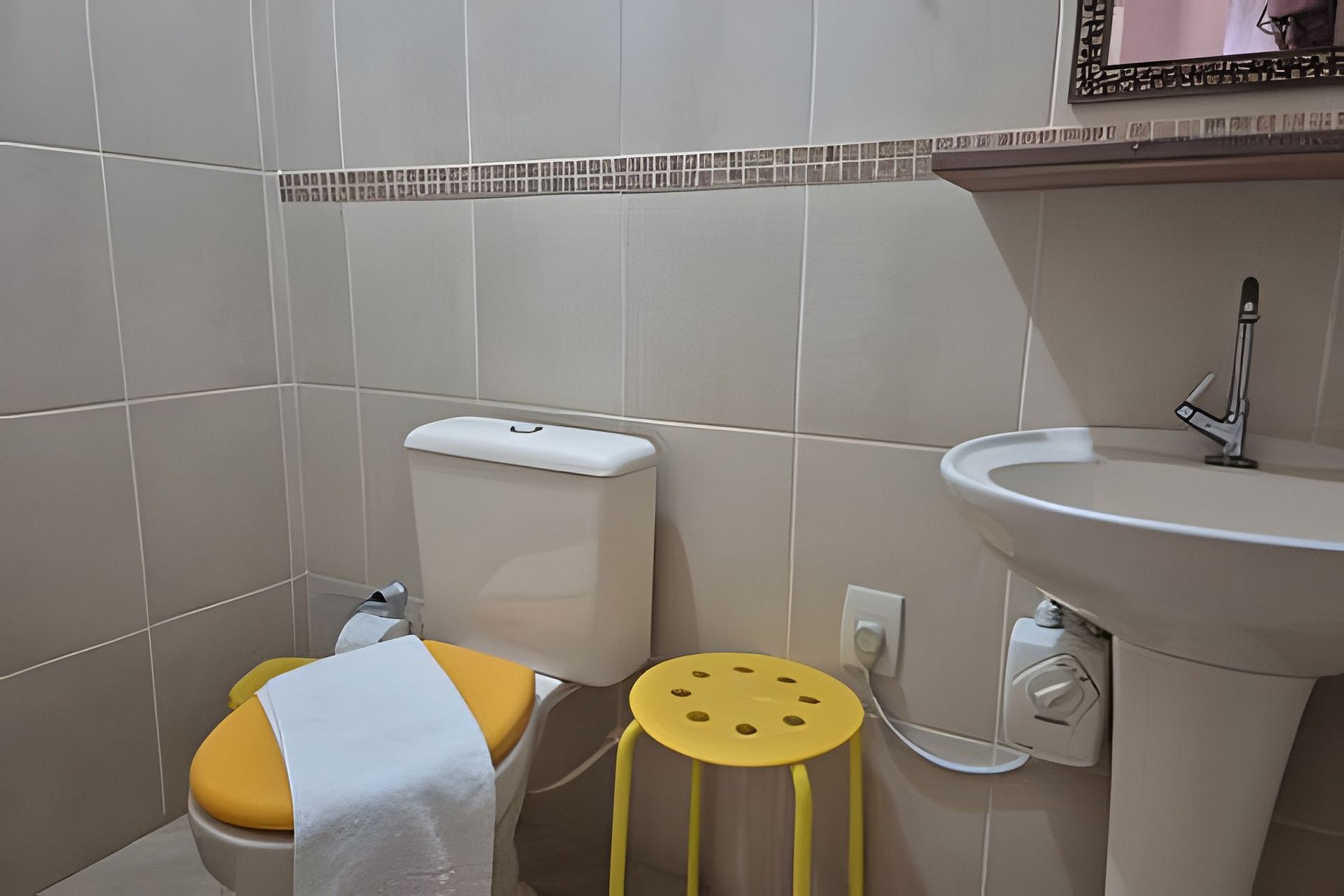 Os banheiros estão abastecidos com sabonete e papel higiênico.