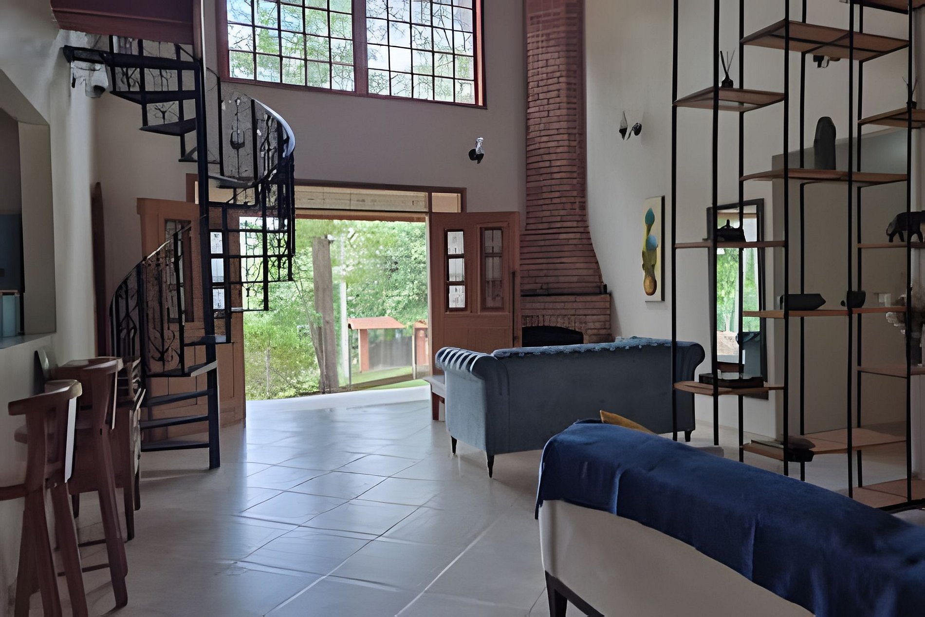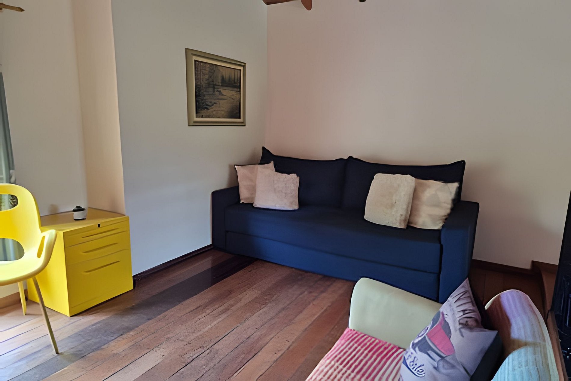 Área de estar com sofá/cadeira